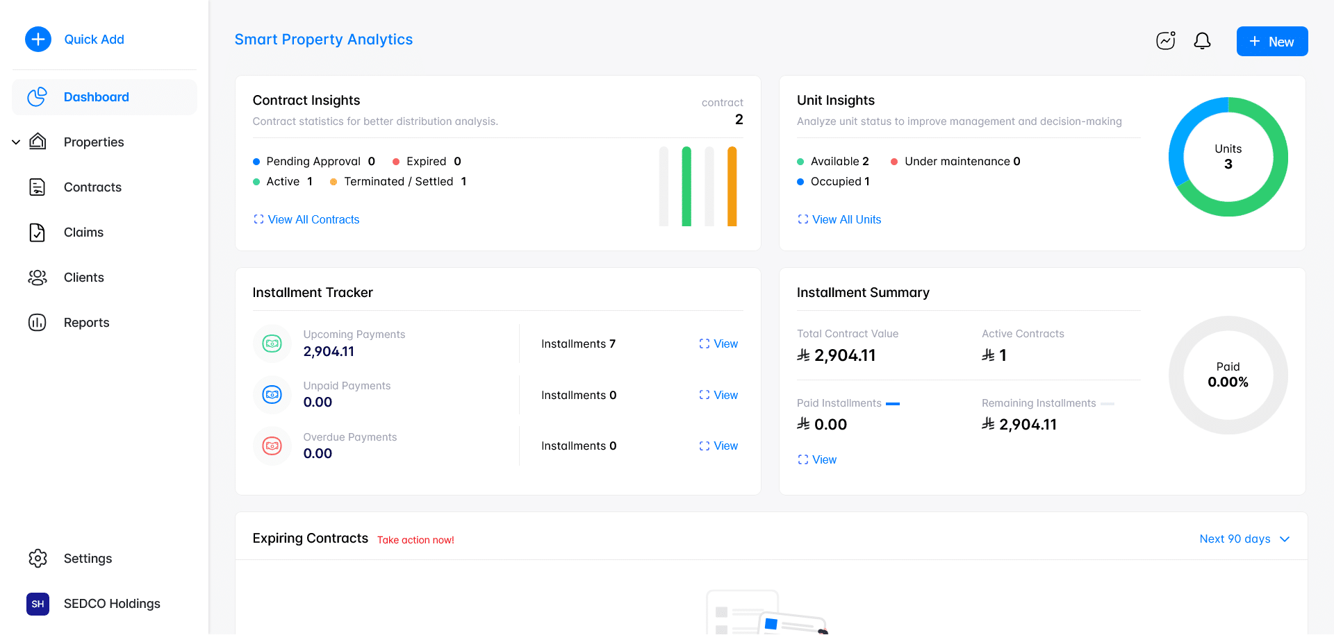 Managing tenant contracts is seamless. You can easily create new lease agreements, define terms, assign units, and capture all relevant details in just a few steps. When a contract expires, simply extend or renew it without re-entering information, ensuring continuity and accuracy. Each contract is supported with clear status labels; such as active, renewed, expired, or terminated, so you can track progress at a glance.